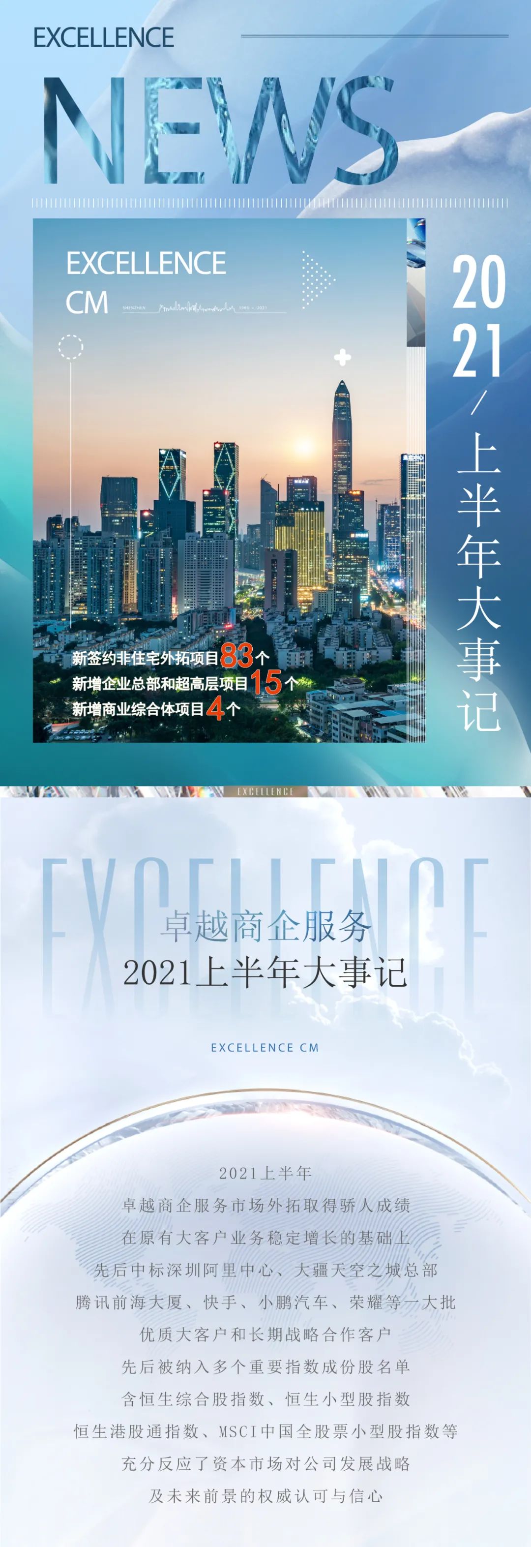 摘得桂冠,不斷突破。卓越商企服務(wù)獲納入恒生物業(yè)服務(wù)及管理指數(shù)成份股;卓越蔚藍(lán)群島四期榮獲首批省級“質(zhì)量標(biāo)桿”項(xiàng)目稱號;卓越商企服務(wù)榮獲2021 “金殿獎”最受歡迎物業(yè)及設(shè)施管理公司獎。