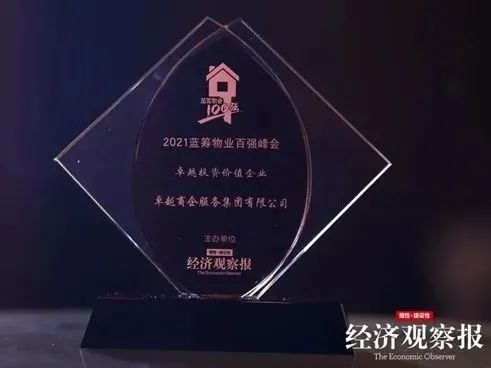 卓越商企服務(wù)斬獲2021多項(xiàng)榮譽(yù),獲得“2021藍(lán)籌物業(yè)百強(qiáng)企業(yè)”、“2021卓越投資價(jià)值企業(yè)”兩項(xiàng)大獎,卓越商企服務(wù)集團(tuán)有限公司執(zhí)行董事兼總經(jīng)理郭瑩榮獲“2021年度領(lǐng)軍人物”稱號,并成功入圍RICS Awards China 2021 “年度設(shè)施管理團(tuán)隊(duì)”獎項(xiàng)