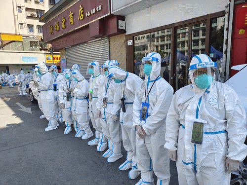 福田·卓越時代廣場項目迅速組織12人次支援社區(qū),分別到福安社區(qū)及崗廈社區(qū)參與掃樓及封村行動,持續(xù)工作12小時以上,高效有序配合社區(qū)工作站人員防疫工作。
