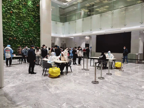卓越商企服務坪山榮耀智造產(chǎn)業(yè)園項目按照坪山政府48小時核酸要求,針對坪山園區(qū)進行隔天一次的全員核酸檢測,在1月7日至2月7日的一個月時間內(nèi),組織志愿者團隊配合政府完成13輪14場全員核酸篩查工作,完成39140人次核酸取樣。
