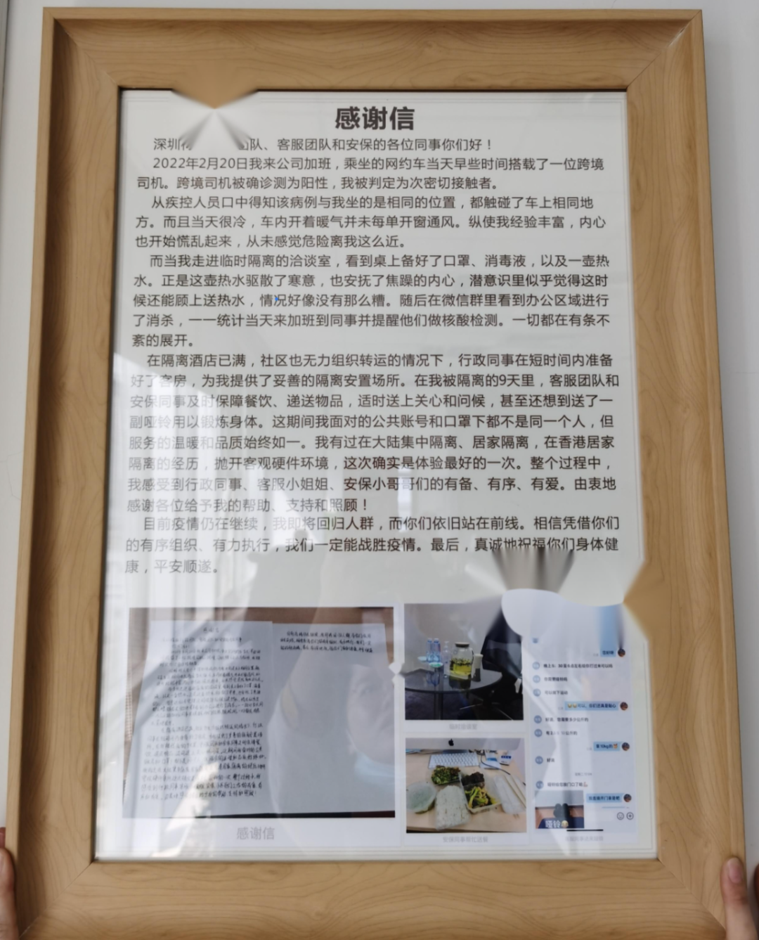 2月20日,深圳VIVO項目某員工被要求就地隔離。2月21日-2月28日期間,物業(yè)同各部門緊密配合,做好隔離人員三餐保障及消毒工作,并提供暖心服務,直至隔離圓滿結(jié)束,客戶員工發(fā)長文感謝,贊賞卓越商企服務有備、有序、有愛!