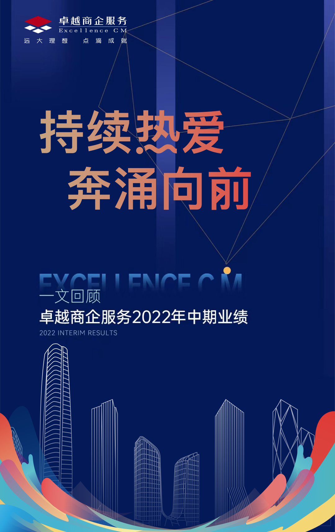 2022年8月29日,卓越商企服務(wù)集團(股票代碼:06989.HK)發(fā)布2022年中期業(yè)績公告。在疫情反復(fù)與經(jīng)濟環(huán)境波動的上半年,卓越商企服務(wù)穩(wěn)健經(jīng)營、蓄勢未來,堅持可持續(xù)發(fā)展與長期主義,以夯實的大客戶服務(wù)優(yōu)勢、2+X主營業(yè)務(wù)綜合實力、新賽道突破拓展、增值兩翼伸展等,實現(xiàn)業(yè)務(wù)穩(wěn)步增長,營收結(jié)構(gòu)持續(xù)優(yōu)化,凸顯出強勁的發(fā)展實力。