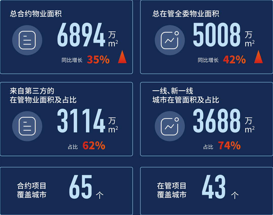 面向未來,卓越商企服務(wù)充滿信心,堅持業(yè)務(wù)的穩(wěn)步推進和規(guī)模的有效增長;堅持數(shù)字化創(chuàng)新來提升管理效率和客戶體驗,打造實實在在的核心能力;堅定人才建設(shè),持續(xù)打造有戰(zhàn)斗力的團隊...穩(wěn)扎穩(wěn)打,在每個運營環(huán)節(jié)上下深功夫,厚積薄發(fā),穩(wěn)健經(jīng)營,蓄勢未來。憑借全生命周期全鏈條綜合服務(wù)能力,鞏固在中國商務(wù)服務(wù)物業(yè)服務(wù)提供商的領(lǐng)先地位。