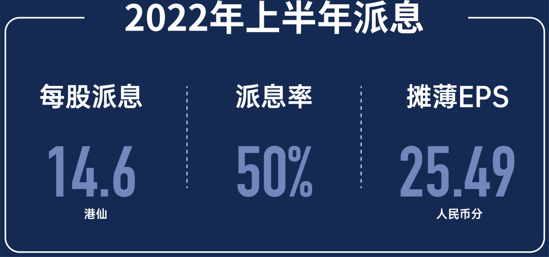 2022年半年派息每股14.60港仙,派息率50%,平衡資本開支與股東現(xiàn)金派息。公司延續(xù)2021年高派息政策,派息率行業(yè)領(lǐng)先,充分體現(xiàn)公司良好的經(jīng)營業(yè)績和充沛的現(xiàn)金情況。按照中期的股價測算,公司年化股息回報率超過7%,以優(yōu)秀的投資回報回饋全體投資者對公司的信賴。
