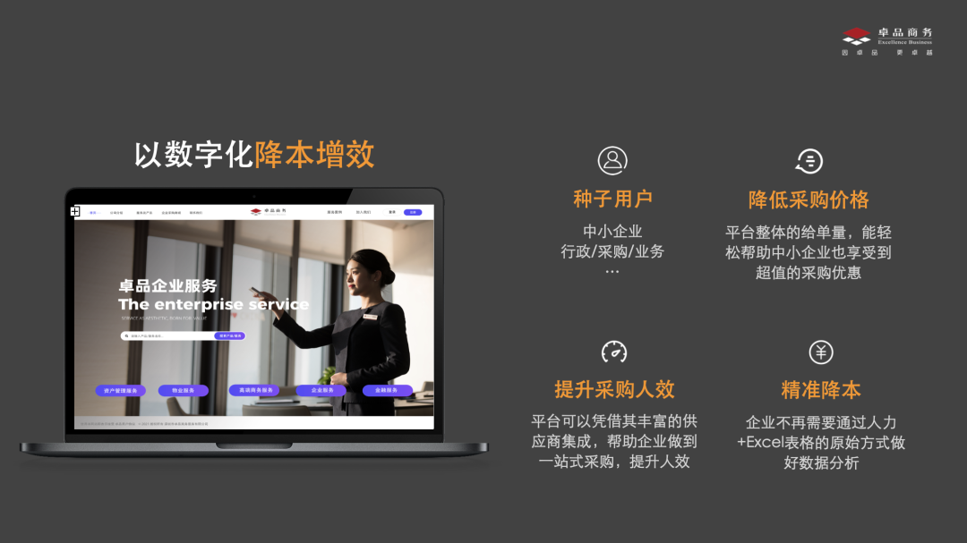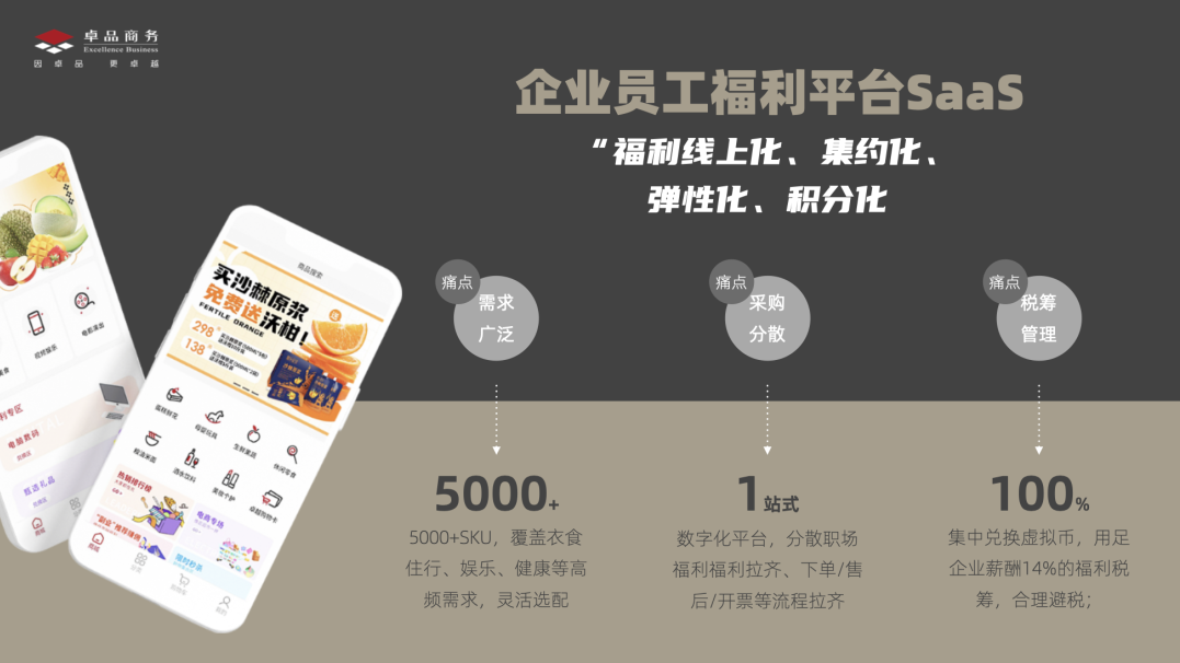 例如,卓越商企服務(wù)旗下卓品商務(wù)打造的員工福利的SaaS化平臺(tái)將企業(yè)幾千名員工的彈性、個(gè)性化需求全部上架到我們福利平臺(tái)之上,通過(guò)這樣的方式,員工可以自主的、更加具有個(gè)性化的、更能滿足自己喜好地選擇員工想要的東西,通過(guò)這樣的方式去完成整個(gè)公司對(duì)于薪酬福利化的指標(biāo),同時(shí)又能夠提高員工的滿意度。