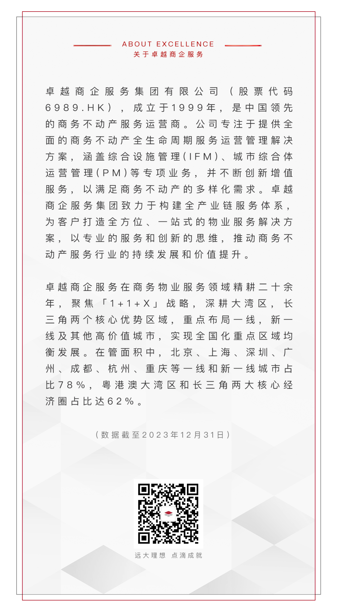 他與卓越商企服務(wù)的結(jié)緣水到渠成。從成立之初,卓越商企服務(wù)便確立了以“成為領(lǐng)先的商務(wù)不動(dòng)產(chǎn)服務(wù)運(yùn)營(yíng)商”為愿景。眾多互聯(lián)網(wǎng)高科技大廠的總部和大型產(chǎn)業(yè)園區(qū),都由卓越商企服務(wù)提供服務(wù)。