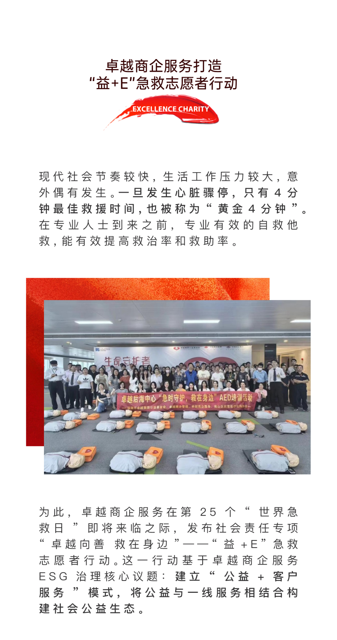 卓越向善|卓越商企服務(wù)打造“益+E”急救志愿者行動(dòng)