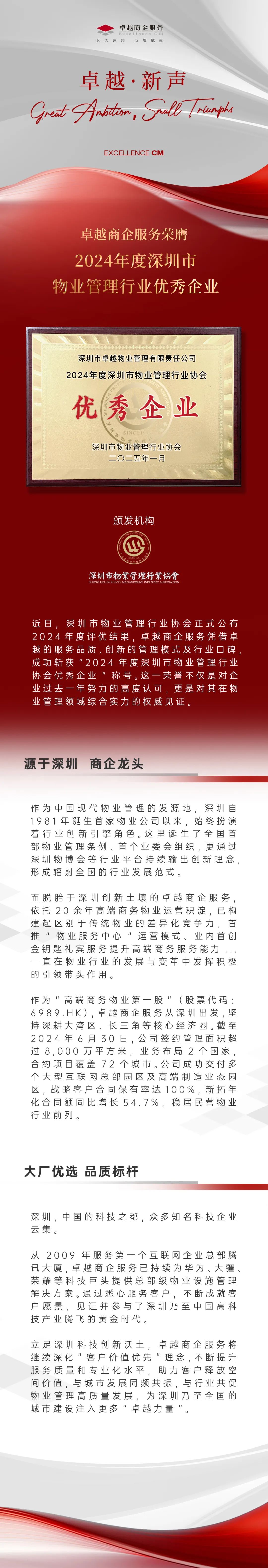 始于鵬城生長全國,卓越商企服務(wù)榮膺深圳市物業(yè)管理行業(yè)優(yōu)秀企業(yè)殊榮