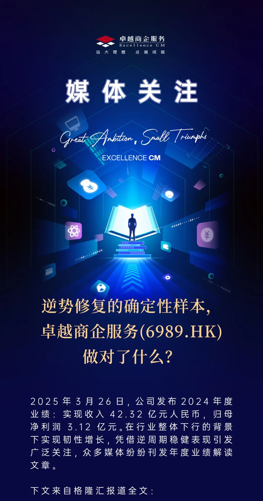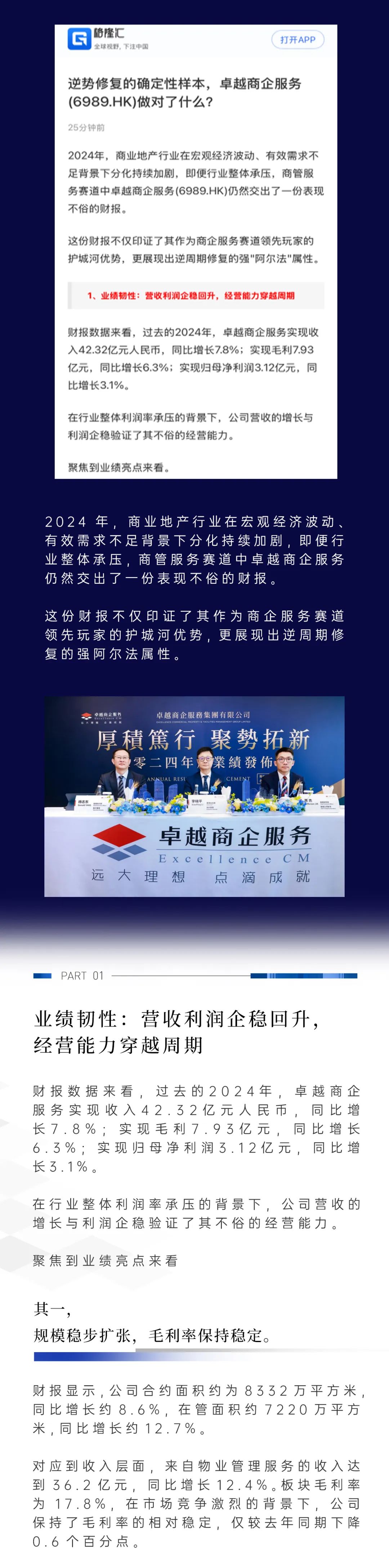 媒體關(guān)注|格隆匯:逆勢修復(fù)的確定性樣本,卓越商企服務(wù)(6989.HK)做對了什么?