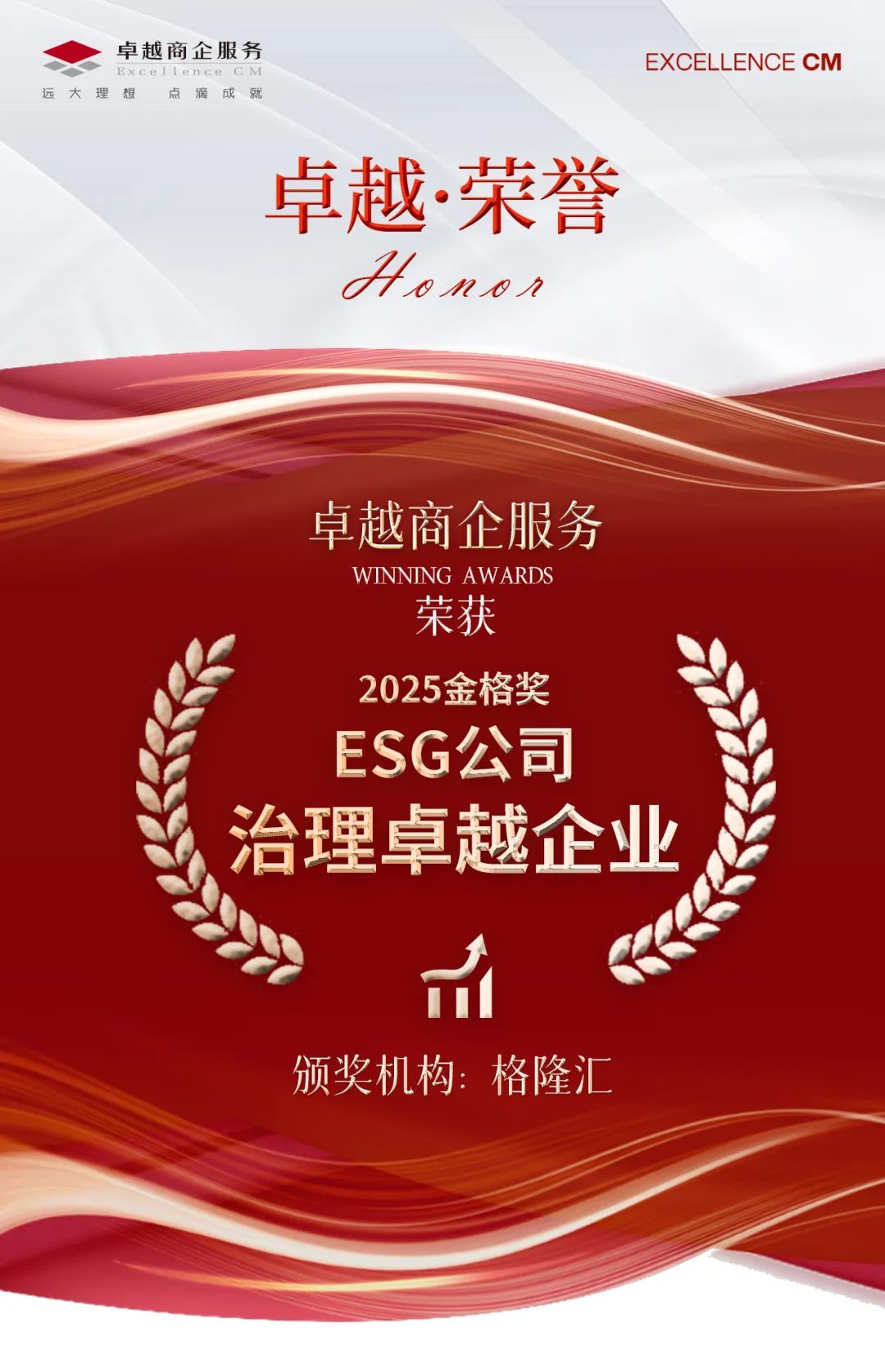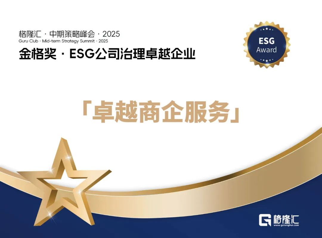 今日,由格隆匯主辦的“格隆匯·中期策略峰會·2025”于深圳順利舉行。在ESG金格獎年度卓越公司評選中,卓越商企服務(wù)榮獲“ESG公司治理卓越企業(yè)”獎項(xiàng)。