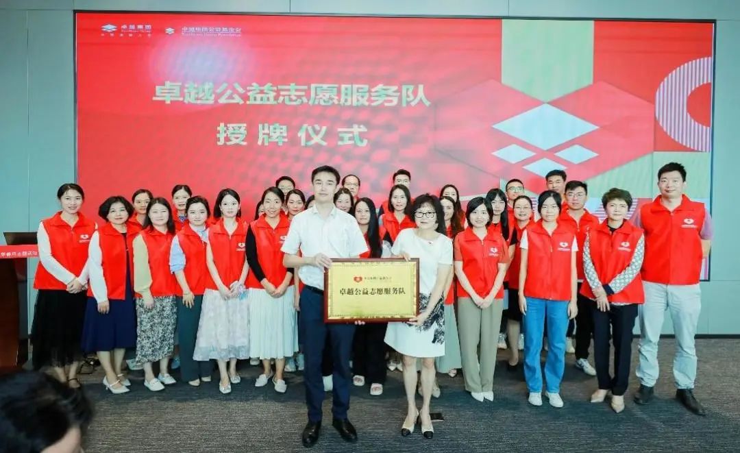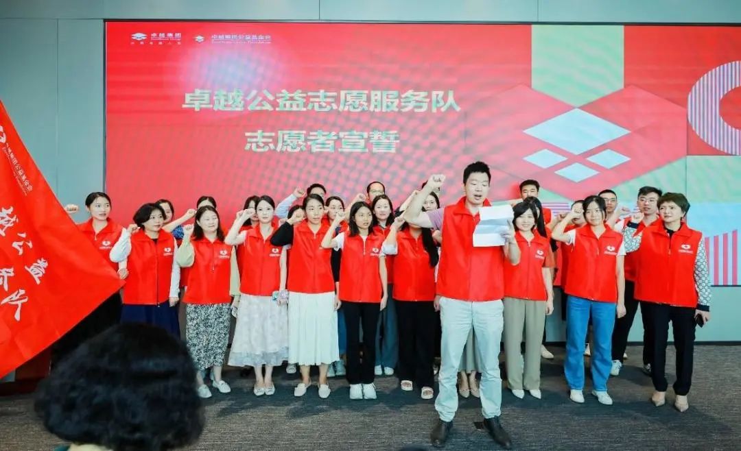 △在與會(huì)人員的共同見(jiàn)證下,卓越公益志愿者服務(wù)隊(duì)正式成立