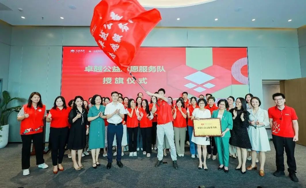 黃睿書(shū)記為卓越公益志愿者服務(wù)隊(duì)授牌授旗,與會(huì)領(lǐng)導(dǎo)共同為服務(wù)隊(duì)剪彩,全體卓越志愿者代表們鄭重宣誓。儀式中,卓越集團(tuán)公益基金會(huì)與德義愛(ài)心促進(jìn)會(huì)簽署“益+小站”卓越公益志愿服務(wù)合作協(xié)議。
