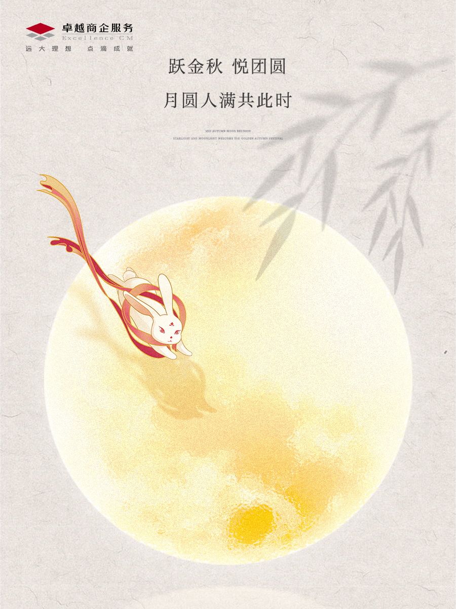 躍金秋,悅團(tuán)圓,卓越商企服務(wù)祝廣大客戶以及卓越家人們中秋節(jié)快樂,闔家團(tuán)圓,身體健康,萬事順?biāo)欤?/p>