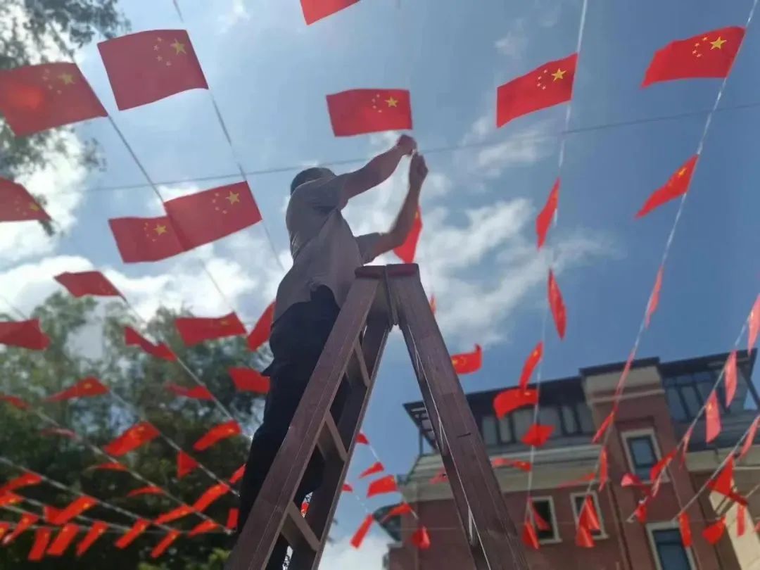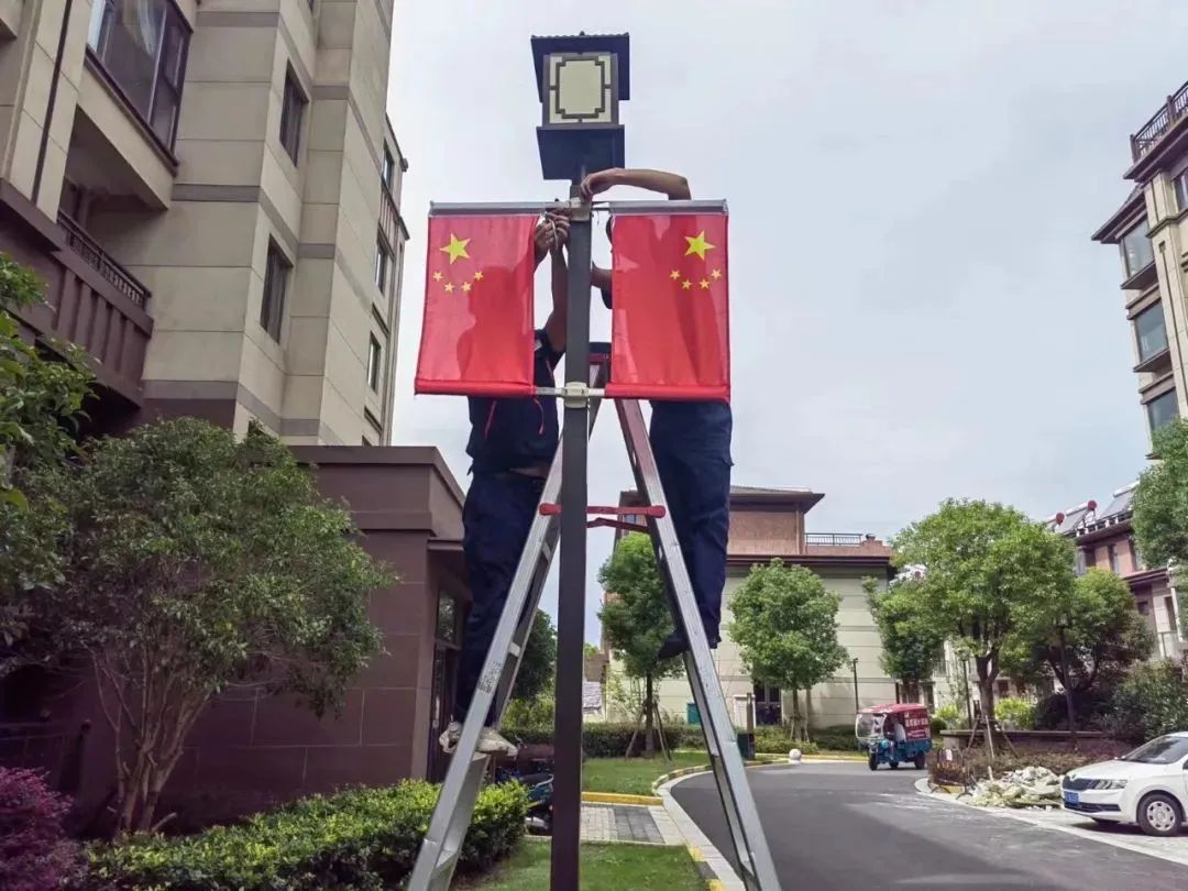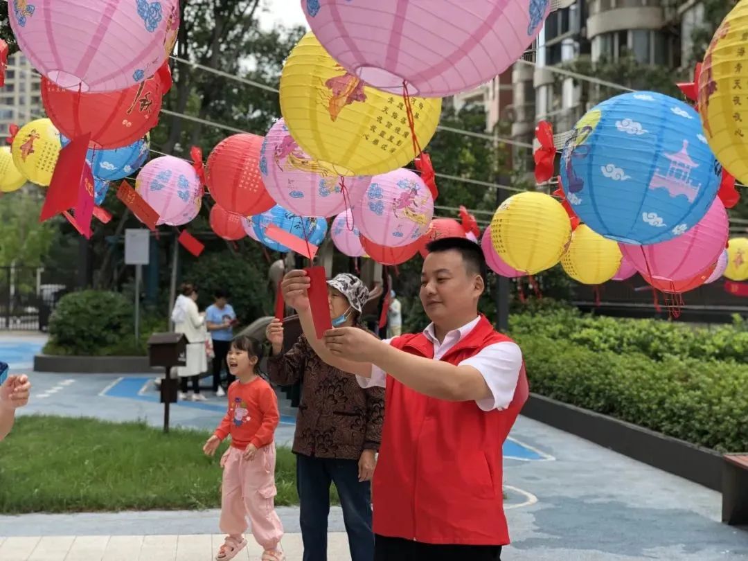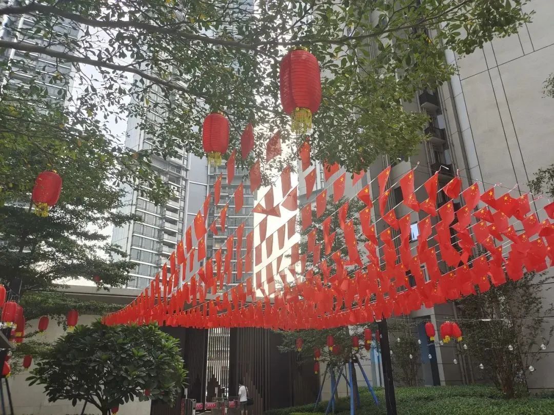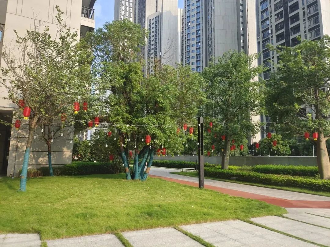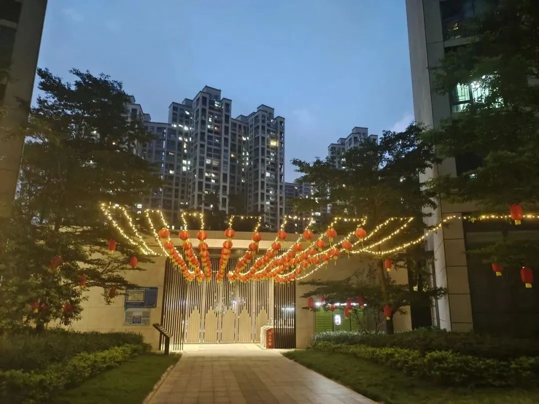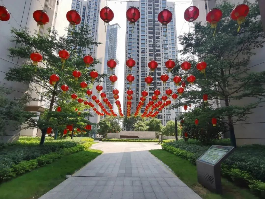 卓越美好社區(qū)在園區(qū)掛上紅旗、燈籠